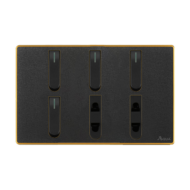 AQUA NEO ACRYLIC BLACK 4 GANG SWITCH + 2 SOCKET