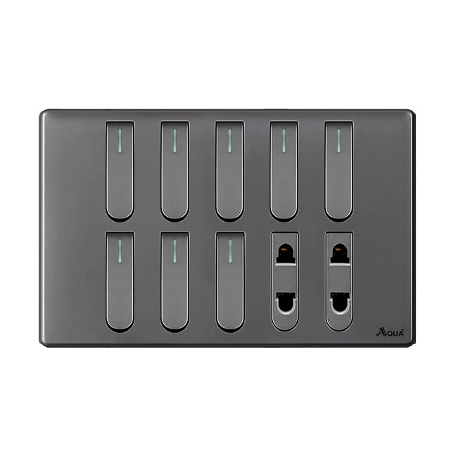 AQUA NEO SUPER GREY 8 GANG SWITCH + 2 SOCKET