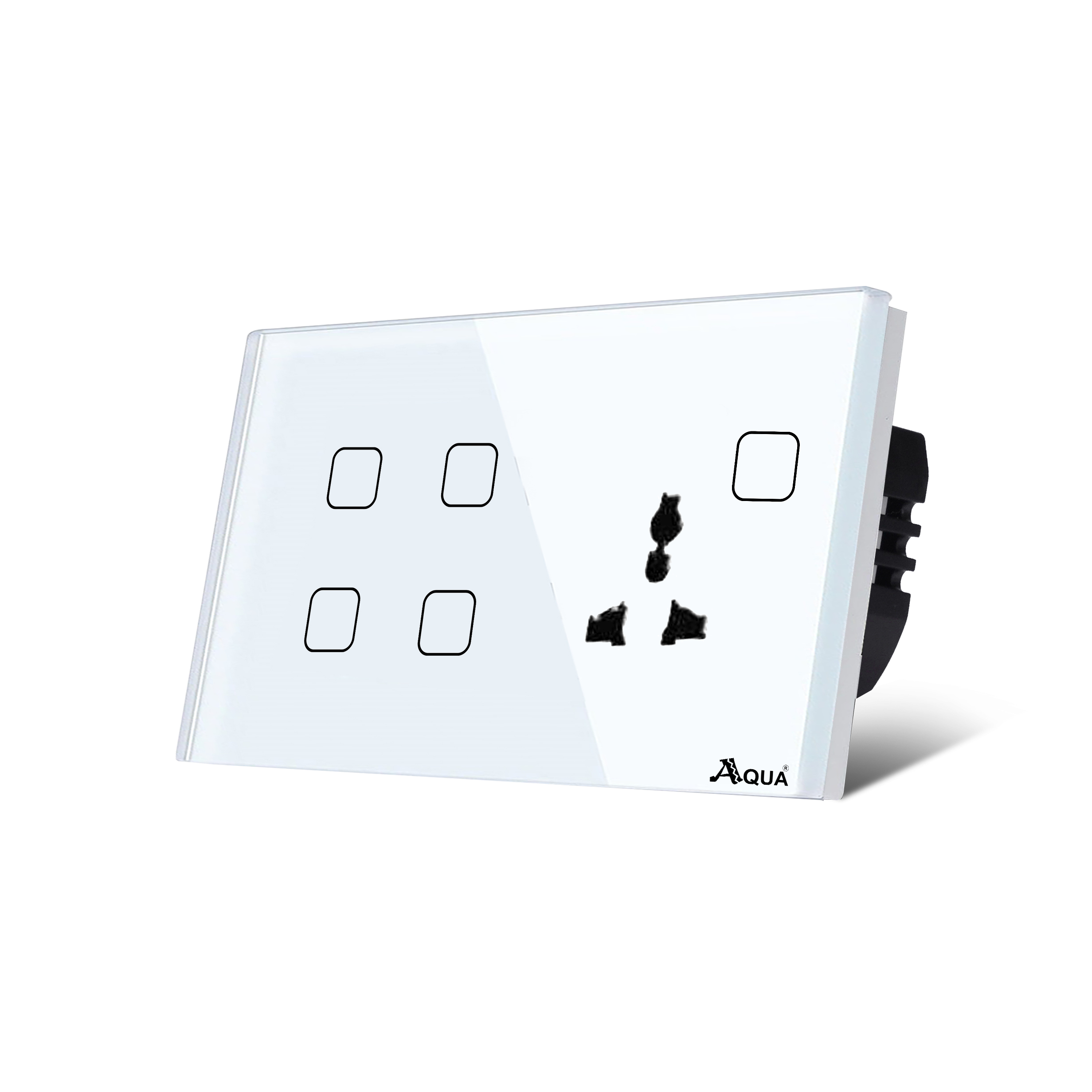 Glass Wifi Smart 4 Gang Switch Plus Multi Socket